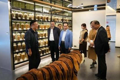 座谈交流前,学校党委书记林清才陪同蔡乔中副院长一行参观学校四史馆、医药健康学院中药陈列馆及各实训室、产学研楼及应急技术实训基地等。