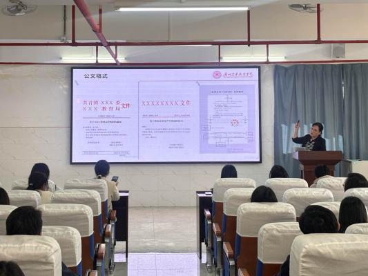 为提升我校行政人员公文写作水平与文件处理规范,强化业务能力。12月1日下午,我校在产学研C204教室举办公文处理培训,各职能部门、各二级学院共计50余人参训 。本次培训由党政办公室主任王丽萍主讲。