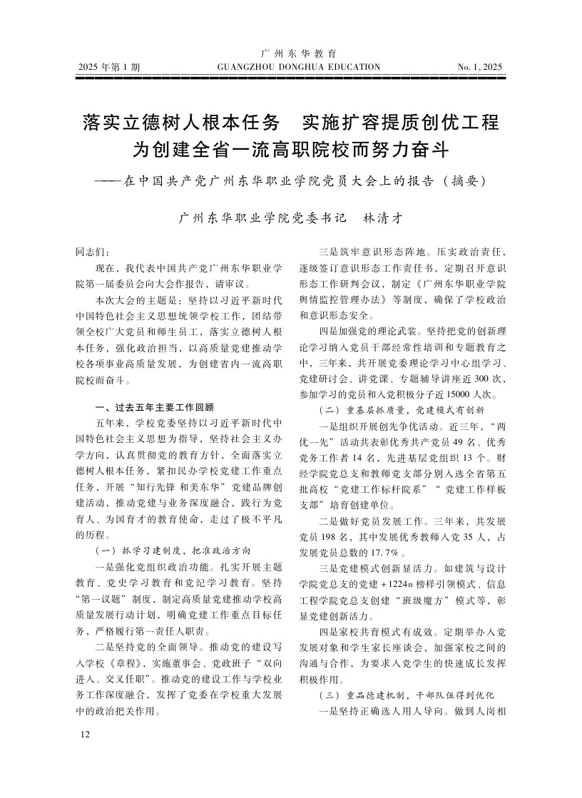 落实立德树人根本任务 实施扩容提质创优工程 为创建全省一流高职院校而努力奋斗