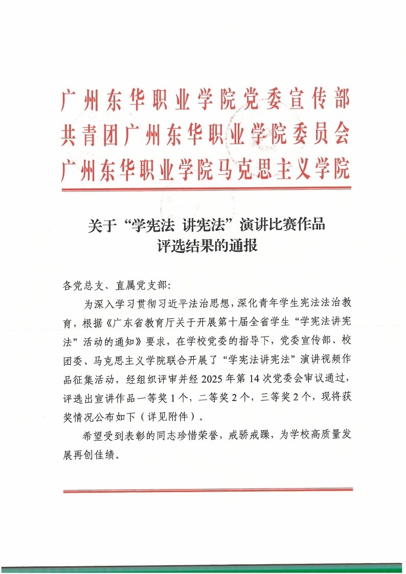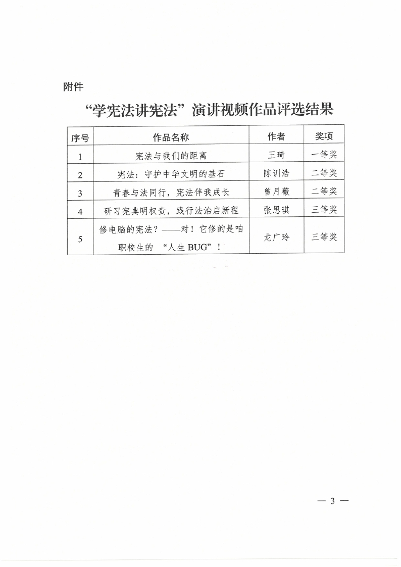 关于“学宪法 讲宪法”演讲比赛作品评选结果的通报