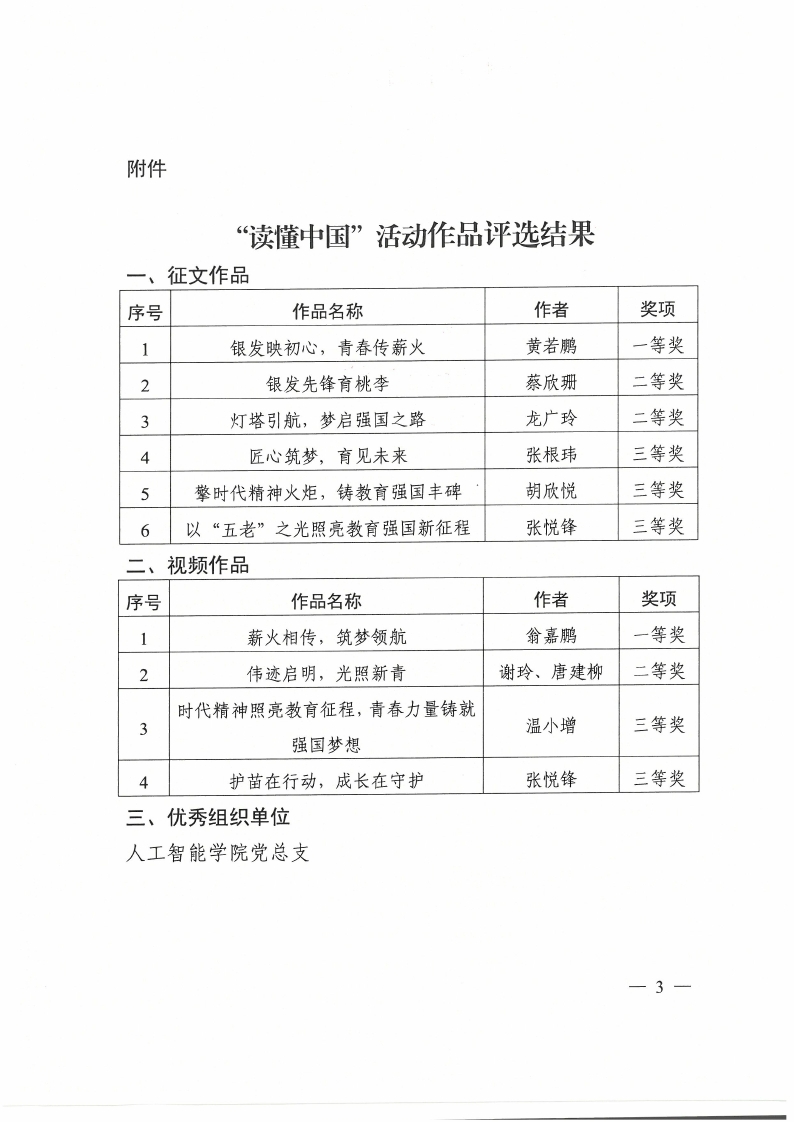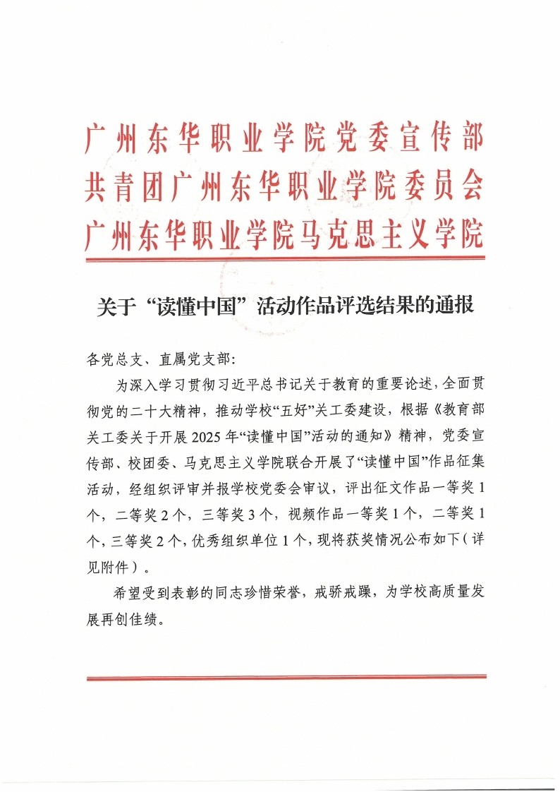 关于“读懂中国”活动作品评选结果的通报