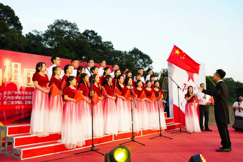 红歌声声颂党恩,革命精神世代传。为庆祝中华人民共和国成立75周年,10月30日,广州东华职业学院在田径场举行“为祖国歌唱”草坪音乐会。