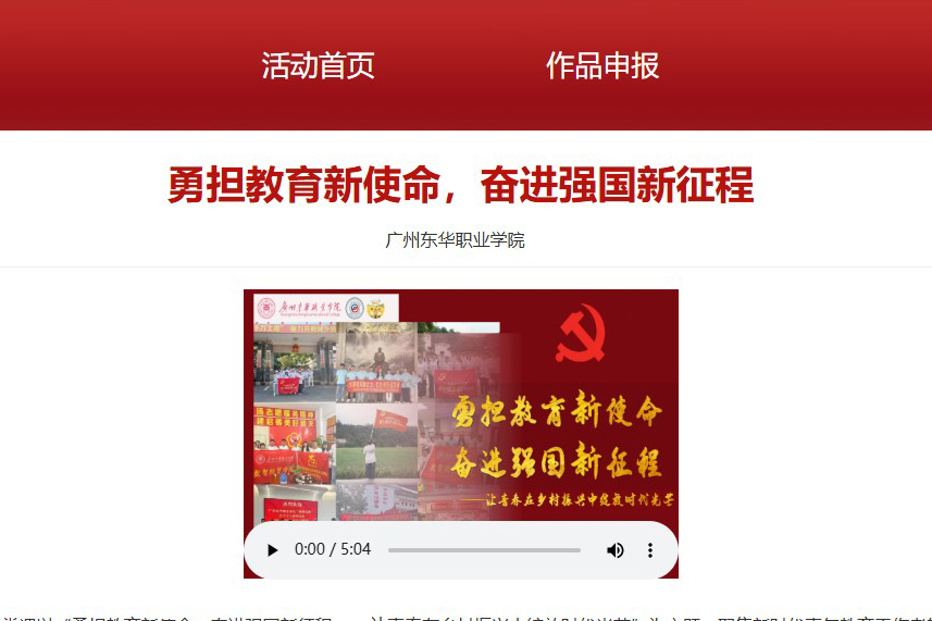 登录中国共产党新闻网→查找“精品微党课”专栏专题→搜索栏输入“广州东华职业学院”→欣赏我校精彩作品。
