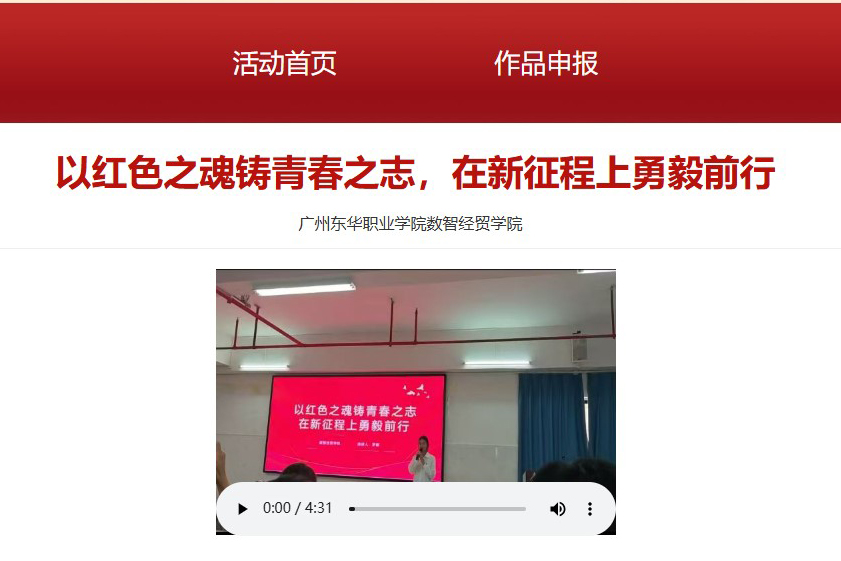 近期,由中国共产党新闻网主办的“精品微党课征集展播活动”揭晓成果,我校数智经贸学院选报的《以红色之魂铸青春之志,在新征程上勇毅前行》《勇担教育新使命,奋进强国新征程》等4部微党课作品,经过严格遴选,成功入选并在该平台展播。
