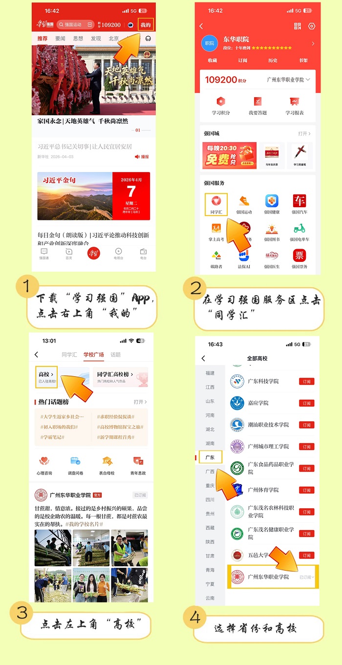 什么是同学汇? “同学汇”是“学习强国”平台为高等院校量身打造的思政社交服务板块。该板块集内容社区、思政慕课、社交通讯、通知服务等功能于一体,是一个以服务高校师生及校友为核心、兼具线上社交与学习服务双重功能的融媒体思政平台,为广大师生、校友提供了一个发声探讨、分享自我的舞台。 在这里,你可以实现高校社交圈层与学习资源的有效整合,体验一个经官方认证、安全合规的校园社群平台。