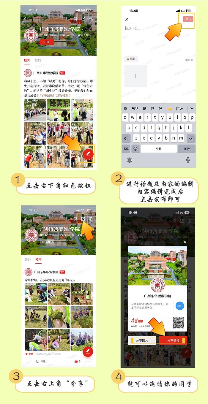 在同学汇能做什么? 在这里 无论是东华职院的在校学生 还是已经毕业的校友 都可以订阅并加入学校的“同学汇” 同学们不仅可以在这里 发布校园日常生活 记录校园美景、分享学习趣闻 还可以为同学的动态点赞和评论 拓展社交圈子,结识更多好友 此外,大家还能 参与学校发起的各类话题活动 获取学校最新资讯链接 并与校友交流学习经验 青春的故事 值得被好好记录 更值得被好好回忆 快来加入同学汇 分享你的校园生活 和同校的伙伴们一起 把青春的每一份精彩都好好珍藏
