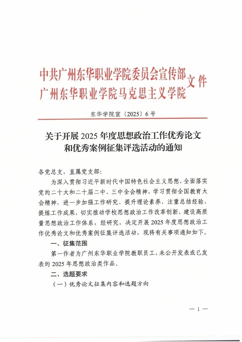 关于开展2025年度思想政治工作优秀论文和优秀案例征集评选活动的通知