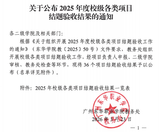 关于公布2025年度校级各类项目结题验收结果的通知