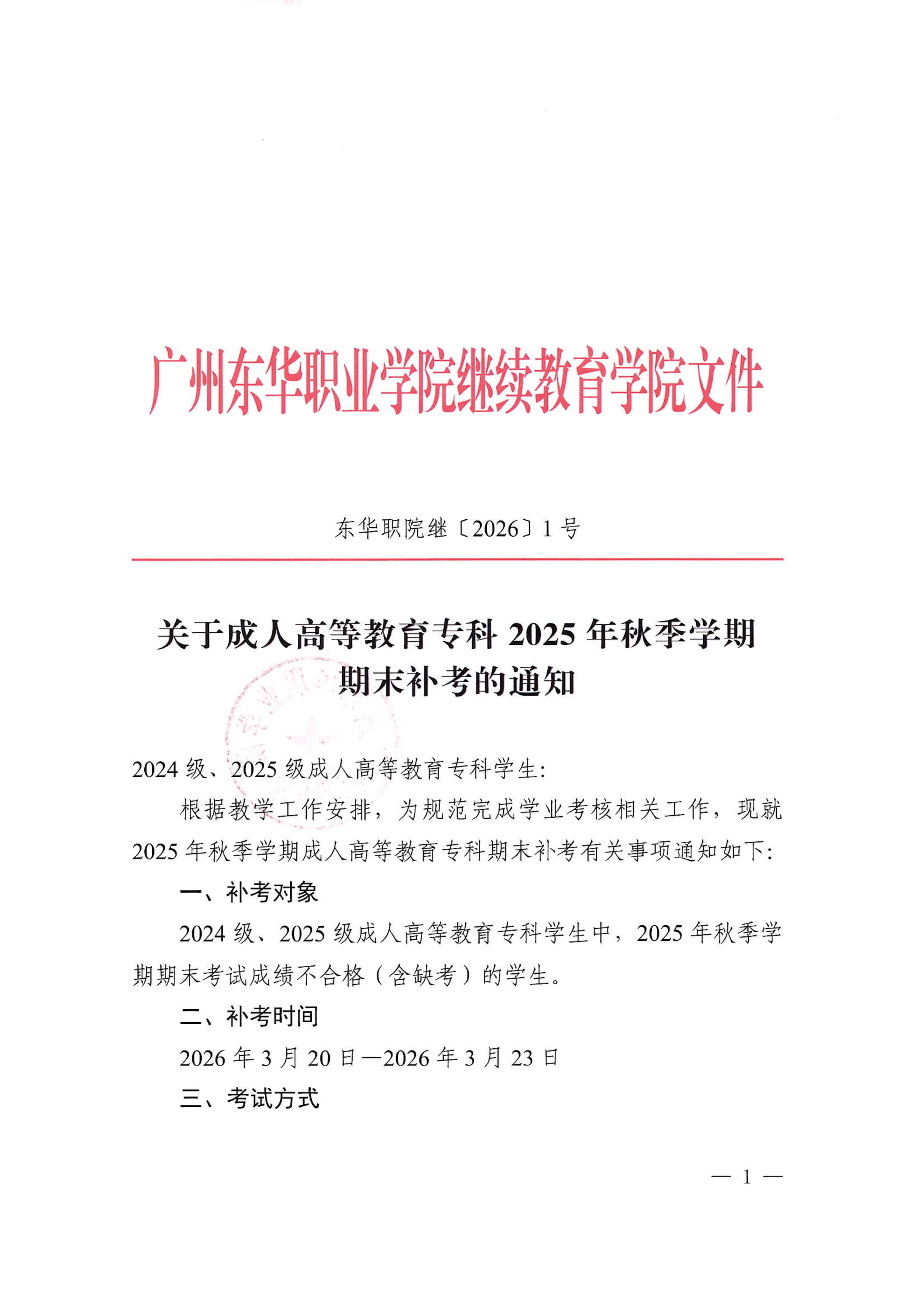 关于成人高等教育专科2025年秋季学期期末补考的通知
