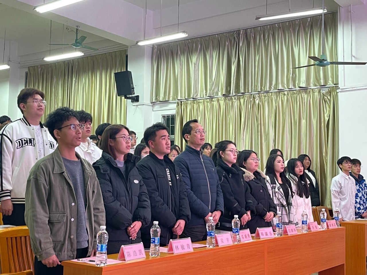 全体成员起立,奏唱国歌,在慷慨激昂的国歌声中,本次开班仪式正式拉开帷幕。