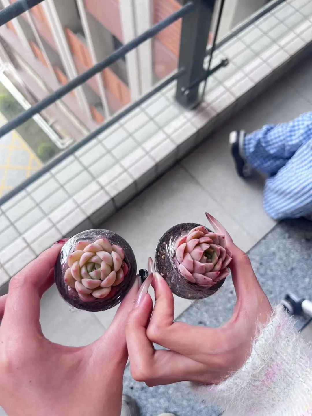 多肉领养:师生们领养了形态各异、易于养护的多肉植物,如静夜、熊童子、玉露等,为校园增添了一抹绿色生机。