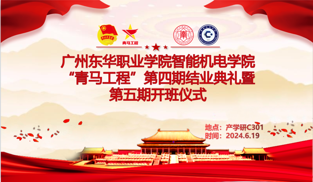 为深入学习贯彻习近平新时代中国特色社会主义思想,贯彻党的二十大精神,进一步深化青年学生思想政治引领实效,充分发挥“青马工程”学员典型。智能机电团委于2024年6月19日中午12:30在产学研楼C301举行广州东华职业学院智能机电学院“青马工程”第四期结业典礼暨第五期开班仪式。